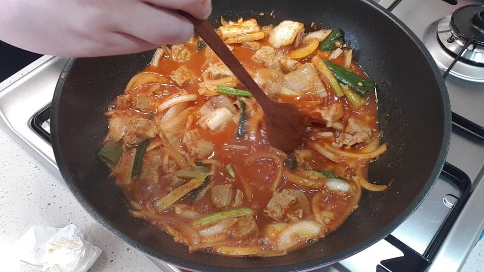김치랑 돼지고기 듬뿍 넣고 자작하게 끓여