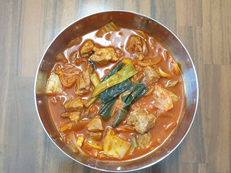 김치를 넣어서 김치찌개 같지만 맛보면 김치찌개보다