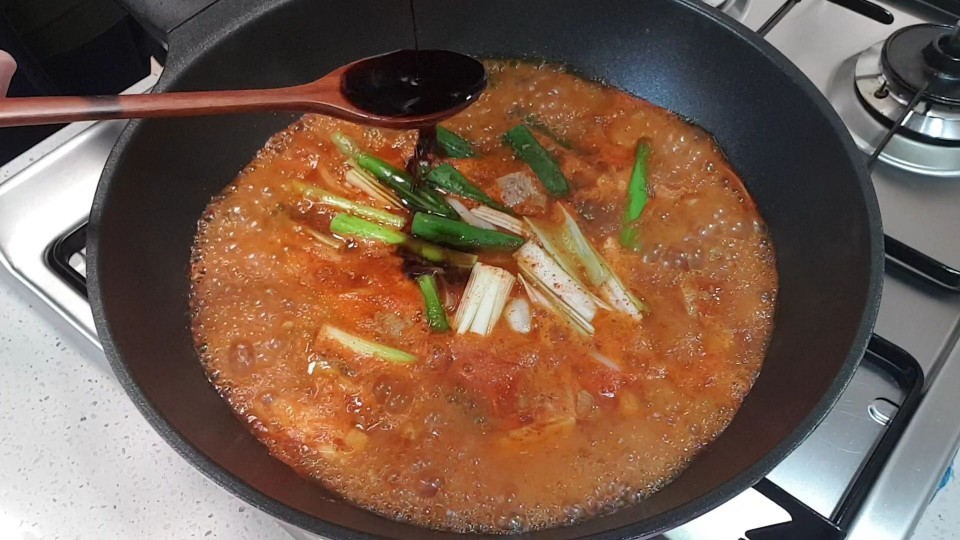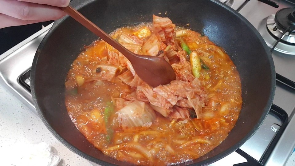 김치를 넣고 한소끔 끓여 주면 끝입니다.
