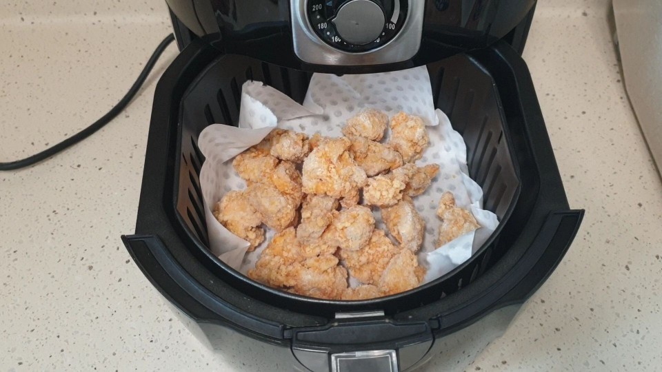 먼저 에어프라이어에 치킨을 넣고 180도에서 10분 정도 돌려주었습니다.